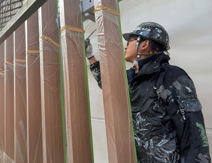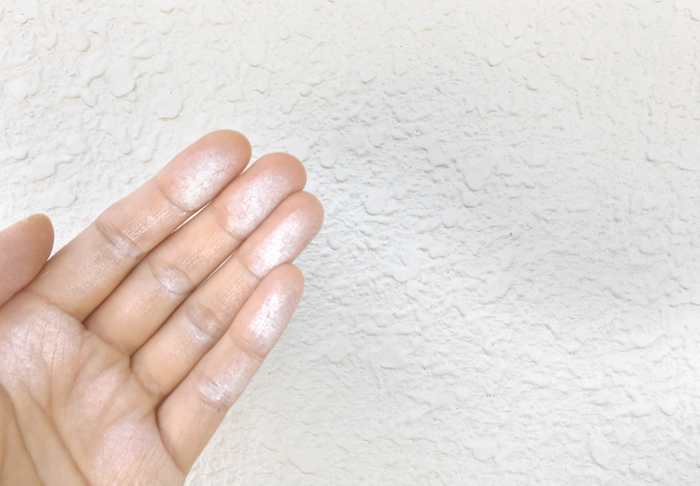 外壁に触れると白い粉が手につく状態で、塗膜劣化のサインです。 -